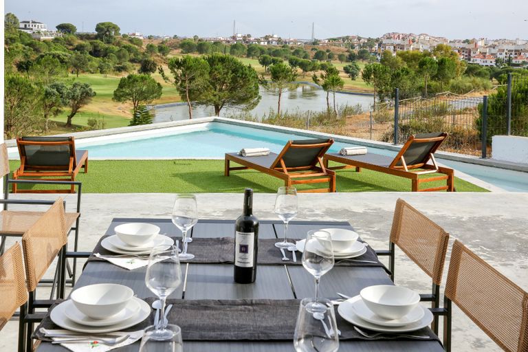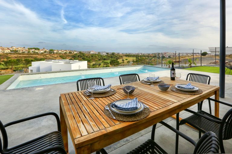 Tres casas ubicadas en el campo de golf Isla Canela Links, Ayamonte, en la salida del hoyo 2 y salida del hoyo 4, con vistas excepcionales al golf, al río Guadiana y al Algarve Portugués